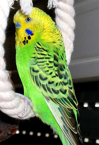 Opalino Azul Cobalto De Rostro Amarillo En los Opalinos, el rayado de la cabeza destaca menos y en ejemplares bien marcados poseen una zona en forma de V libre de marcas. El plumaje mas oscuro queda limitado a las alas y no se extiende hacia abajo desde la base del cuello como sucede en los periquitos marcados normales.