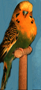 Aparición: Arriba Izquierda:Pio Dominante Holandés Verde-Gris De Penas Claras Al igual que en el Pio Dominante Australiano, este también existe en 2 formas, la dispersa en donde las manchas son irregulares, y la forma de penas claras. Es difícil distinguir visualmente una raza de la otra, pero son distintas genéticamente. A diferencia del Pio Dominante Australiano el Pio Dominante Holandés no produce Splits . Suelen tener la clásica mancha de los Pios Dominantes en la nuca, y una extensión de la mascara hacia el pecho, formando una especia de babero. La forma de Penas Claras de esta raza es utilizada para producir el Claro de Ojos Obscuros. Por lo que si usted tiene un Pio Dominante De Penas Claras y no sabe si es Australiano u Holandés, la única forma de saberlo es haciendo una prueba de acoplamiento, el Pío Dominante Australiano no produce Claros de Ojos Obscuros.
