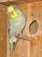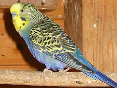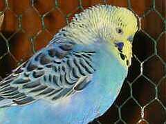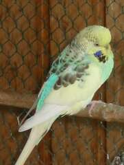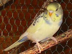 Aparición: 1930 Arriba Izquierda: Azul Cielo De Rostro Amarillo El rostro amarillo no apareció hasta finales de la década de los treinta. Se desarrollaron dos formas distintas a Menudo descritas como tipos azules de rostro amarillo I y II, presentando la primera variedad una coloración mas clara que la segunda. Los individuos con una coloración más intensa son descritos, a veces como de rostro dorado. El Rostro amarillo y/o Rostro Dorado, afecta solo a pájaros de la familia Azul, entre estos los grises, albinos y píos; se puede combinar también con otras mutaciones como opalinos, canela, spangle, ala blanca, ala gris, entre otras. La versatilidad de esta mutación es impresionante debido a que la intensidad del color amarillo puede crear variaciones en el color original del periquito, logrando tonos que van desde azul turquesa, verdosos hasta grisáceos en periquitos azules, alas blancas o malvas. La combinación de las mutaciones, Ala Blanca , Opalino y Rostro amarillo da lugar al raro pero impresionante periquito denominado como Periquito Arco Iris, esta variedad de periquito tampoco es aceptada como una variedad aparte.