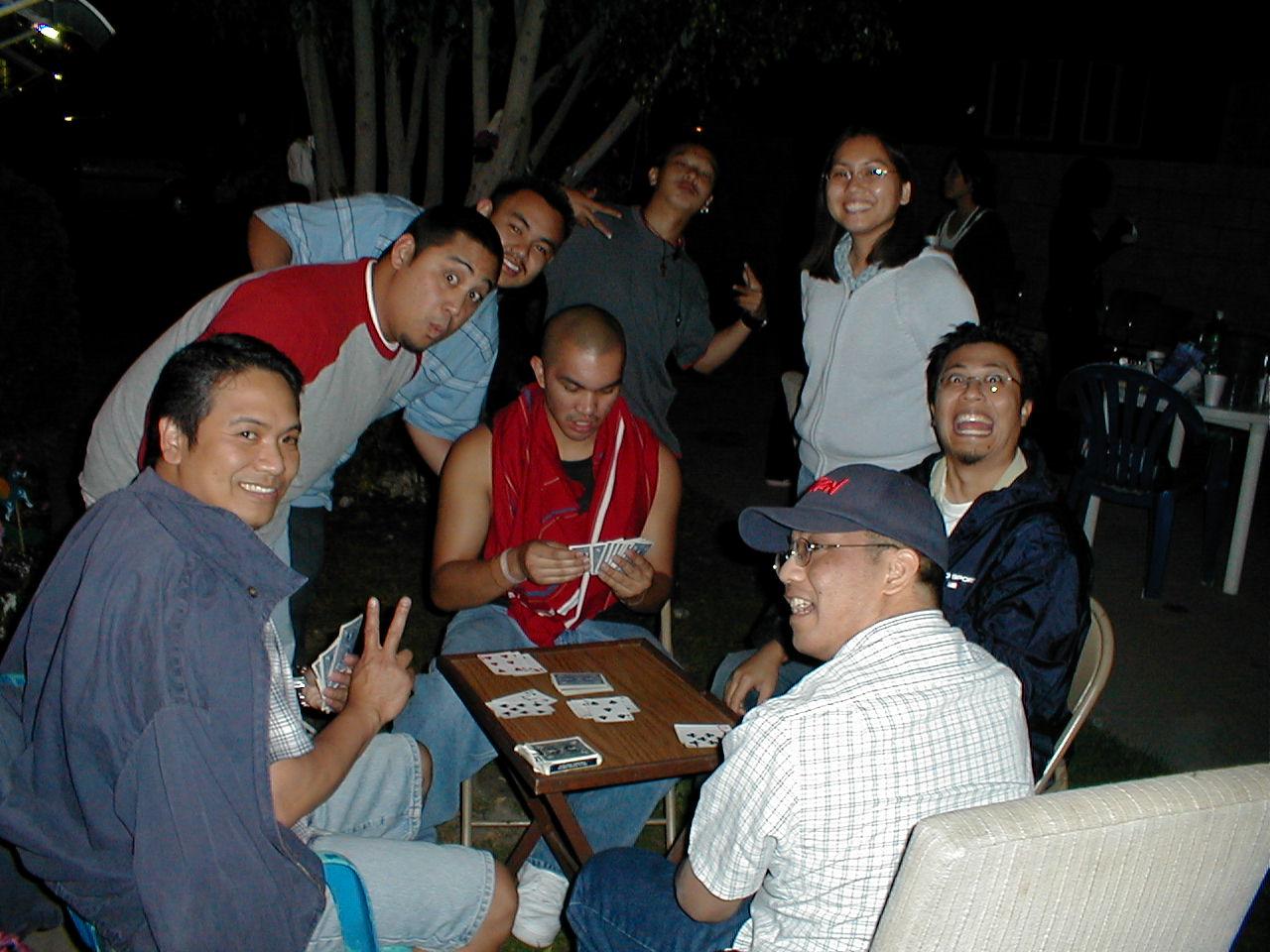 Here, I can name all of them - LoL! Starting from the right side to the left side: Kuya JoJO, Ronel, JJ, JP, Ate Dyan, Ken, Kevin, and I'm the one in the middle. We're playing tongits.