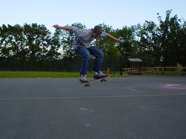 1. Go at a moderate speed. Place your feet as in the diagrams above, your back foot on the middle of the tail,