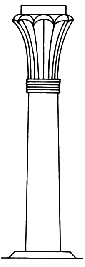 | Campaniforme o Papiriforme Cerrada. Tiene el fuste fasciculado y un capitel en forma de flor de papiro cerrada. Las monóstilas tienen el fuste liso | ||