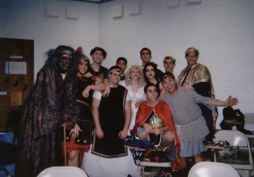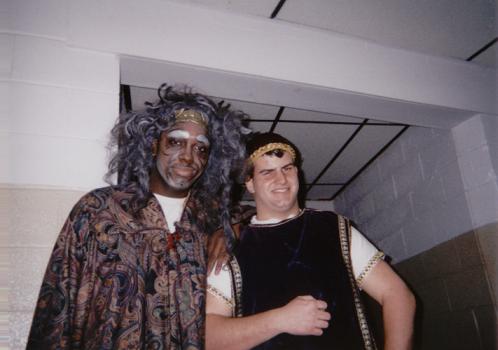 isn't it funny how when we took this picture together tom (pseudolus) and carson (erronius) both look like we cant wait till the picture is taken already??? hmmm