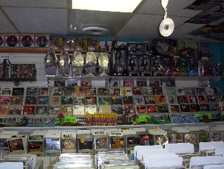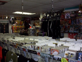 Atomic CD's (pictured above) is my home away from home. It happens to be the coolest little CD shop on the Jersey Coast and (how convenient!) it's right down the road from me! I go there when I am bored, excited, tired, grumpy, silly, etc. Atomic is not JUST a cd store, oh no. Eric (the super-awesome owner) also carries action figures, comic books, magazines, prank toys, jewelry, patches, stickers, rock tees, posters, records, candy, ETC!!! Its so cool! You can also find wonderfully priced USED cd's there! Below are some pictures of the interior of the store: