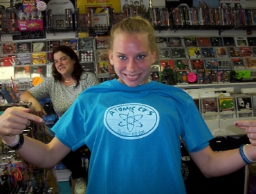 And here I am, Tara, sporting the latest shirt trend... ATOMIC TEES! (Made by super-cool Atomic employee KYLE!)
