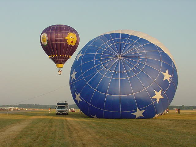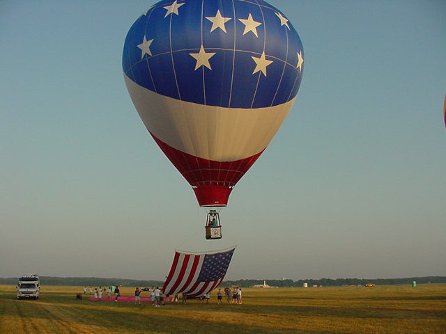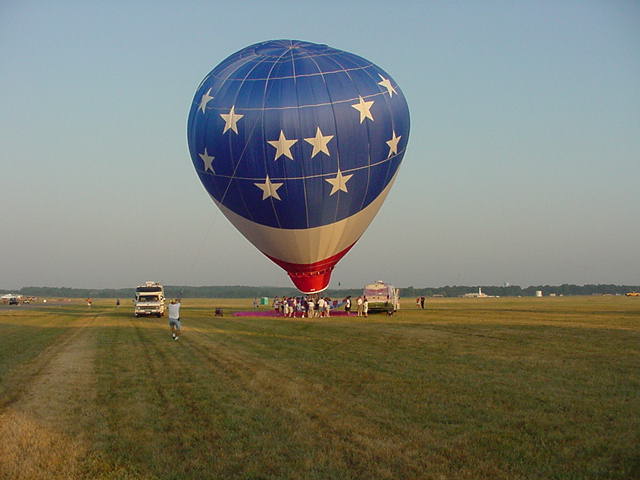 Seasons Change flies over an inflating Independance |