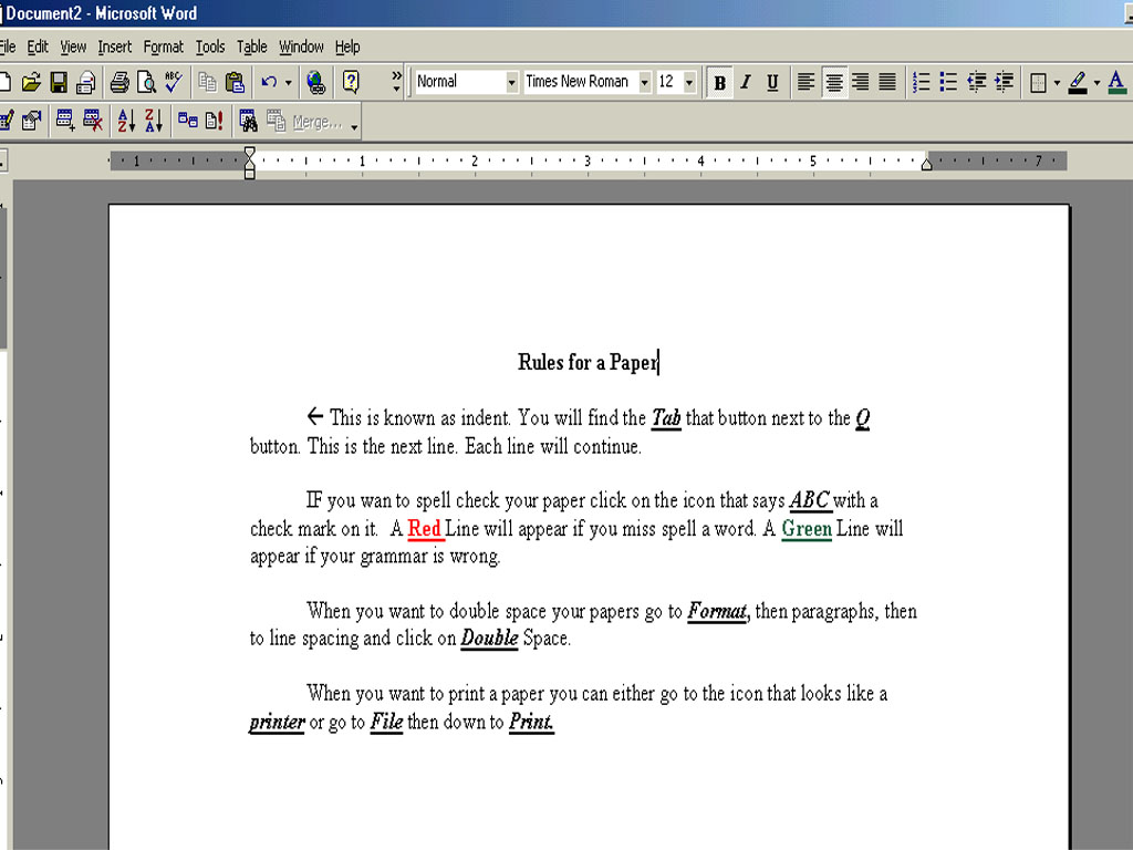 This page is recommended for 6th graders. Teaching them the basics of computer skills that they will use later in school. I will be including examples of everything I discuss on this page, with step by step instructions.