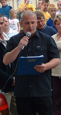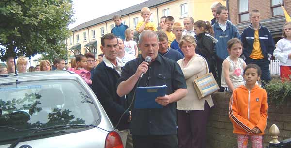 Davy McNutt speaking at unveiling on behalf of McNutt family |