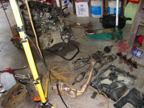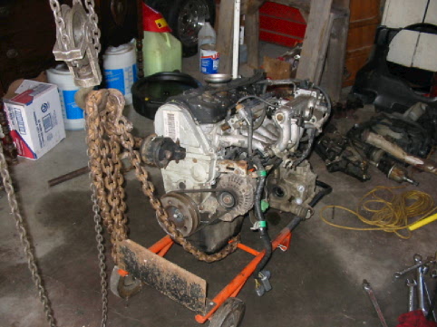 Here's the engine after we pulled it out but hadn't taken it apart yet. |