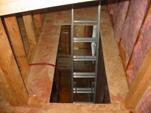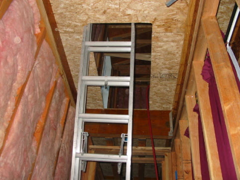 Looking up what will be the staircase. Yes, the ladder is in the opposite direction. |