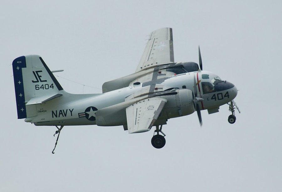 The Trader provided Carrier Onboard Delivery (COD) services, with NAS Quonset Point flying the only twin-tailed Trader. Four airframes were converted for Electronics Counter Measure (ECM) duties as the TF-1Q (EC-1A). The Tracer had an enlarged radome on the top of the fuselage, extending the eyes of the fleet, and giving it its signature piggybacked "Flying saucer" look.