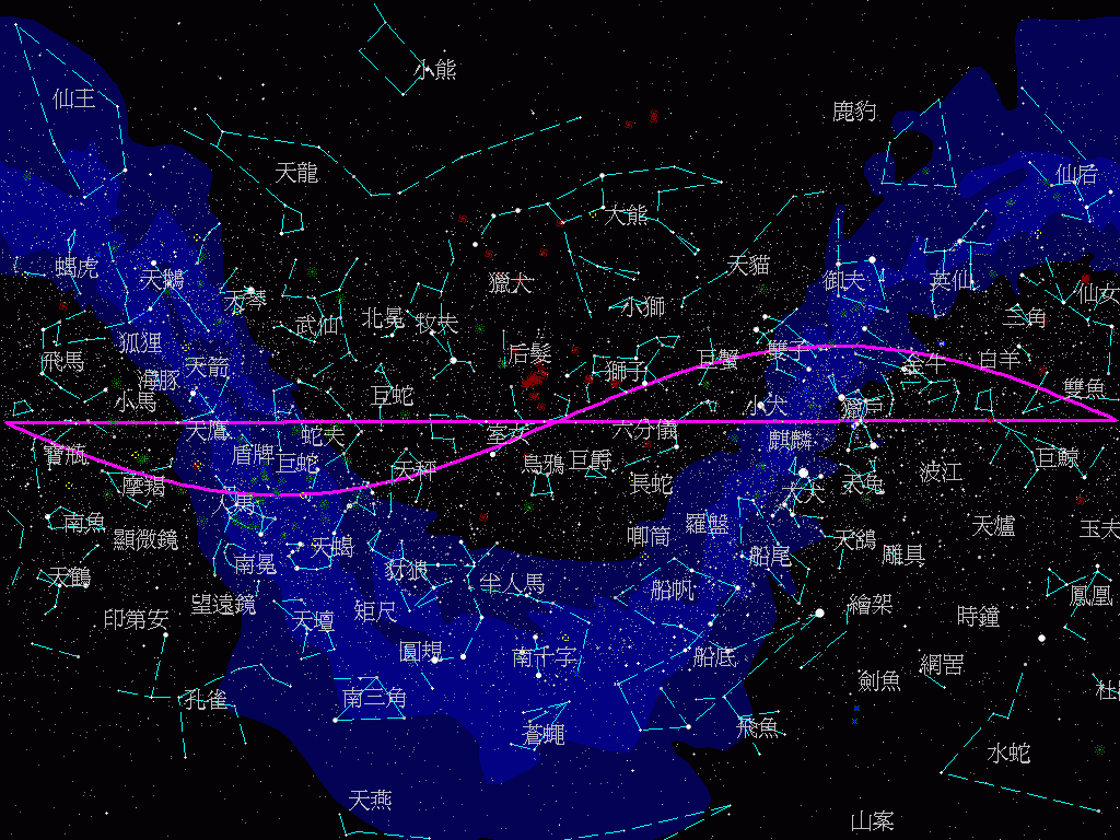 為甚麼會有十三星座而不是十二星座?這一條問題是一條很煩的問題,但亦要筆者不厭其煩的去解釋無數次。 首先大家要明白,所謂星座是古時的人們對天上星空的幻想,他們用想像力把星點聯起來構成不同的圖案,想像是神、人物或動物等形象,現今國際公認的有88個星座,絕大多數取自古希臘的星座神話,及一批十七世紀時因歐洲人航海至南半球、看見北半球不能見的部份南天星空而創造的星座,而所謂的十二星座,則只是其中的一部份吧了。十二星座包括: 雙魚座(Pisces) 括弧的譯名是日本的譯名,非正確的中文譯名。 這十二星座主要是古時巴比倫人用作占卜,也就是今天的占星學(Astrology),而巴比倫人之所以"選擇”這十二個星座,是因為我們從地球上看太陽在天上一年運行了一個圈,而這條軌道就叫"黃道(Zodiac)”,而黃道就剛巧經過這十二星座,因此又叫"黃道十二星座”。而太陽在天上的運動其實只是地球繞太陽公轉的反映,這些星座的恆星其實離我們及太陽非常遠,只不過因視覺效應令太陽"在”某一個黃道星座裡。 全天星空共有88個,曲線是黃道,直線是天球赤道 由於過去數千年地球的自轉軸不斷擺動,因此黃道在星空裡的位置亦有變化,加上以前的人們對星座並沒有一個很準確的分界,直至二十世紀初期國際天文聯會(International Astronomical Union, IAU)如地面的國界般正式為星座進行劃界,所以現今黃道經過了天蝎座後進入人馬座前有約15度的範圍被天蝎座以北的蛇夫座的腳”踩"了過來,這就是所謂”第十三個星座"的出現,其實並沒有新的星座出現,因為一直以來蛇夫座都在天上! 留意圖中箭咀所至乃黃道經過蛇夫座的區域 有一點大家要留意的是,在一些星座運程的文章裡說讀者『在某月某日至某月某日出生的就屬於某某座』,那些日期是指數千年前太陽在那一段日子裡經過該星座吧了,由於這幾千年來黃道在星空裡的位置亦有變化,春分點不斷西移,所以大致上運程表裡的日期與目前太陽真正在該星座的日期有大約一個月的誤差,例如春分日(3月21日)再不是在白羊座而是在雙魚座。而讀者更應注意的是要看見該星座並不在該段日期內,最佳的時間應是六個月之後,因為此時太陽已移到天球的另一方,各位可整晚看見該星座。其他日子亦可以,只不過觀測時間較短,但絕不是該段日子之上。 ©2001 Everything.at/Zeus |