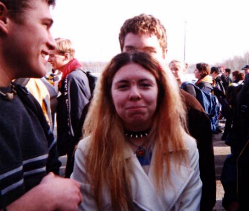 in Chris’ (?) car during the first bomb scare of grade 11.
