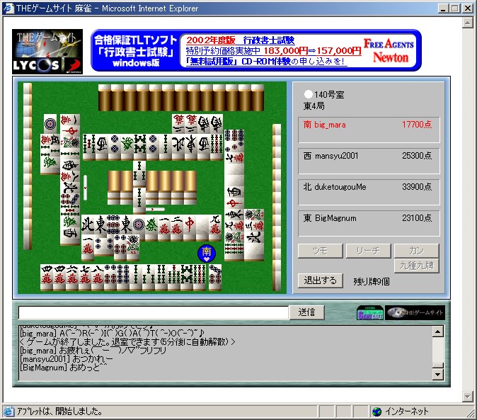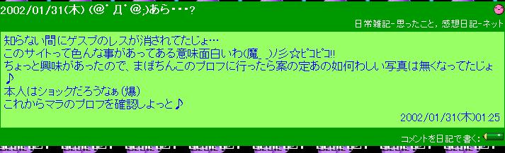 @は... devil_boy2 です。 ここで、彼のハンドルネームを明かす理由は、カフェ閉鎖の原因を検証する上で、 彼を紳士的に扱うのが困難になったのと、それを享受させるに値しないからです 11日、閉鎖発表の後、ライコス側に再度検討してもらうにはと、あれこれ模索 ようやく、日本側ライコス役員へのアプローチ手段を見付け、これを推奨、 その後、寄せられた情報などから、嘆願メールする前に 考慮する出来事を、 @という仮名の元にお知らせしました この中で、devil_boy2 が使用したワイセツHN はライコス側の不手際もあり、 約2ヶ月間 放置され、咎められることなく彼は麻雀ゲーム に参加しました。 これら、資料は不法に入手したものでなく、 彼自身が公然と開示している魔界日記18Pages の中に記載あります (注...もし、彼が慌てて、この日記を削除するなら、COPYをUPLORDしましょう) 彼は悪乗りし過ぎましたね ...... 猥褻GIFは別段たいした価値もなく HNも含め、悪戯と釈明すれば、男性には理解する部分もありますが、 閉鎖までに発展し、それを指摘されても平然としている点に首を傾げます 孝子222さんという人物は... 3月中旬にはdevil_boy2に忠告していた思われ そのことで、devil_boy2 を逆上させ、ゲストブック荒らし があったりして、 された方も怒り、お互いが譲れないような憎悪関係になったようです devil_boy2の猥褻HNを知らせるメモをくれたのは、孝子222さん(3月31日) ライコスの一斉点検は(4月3日)....彼の日記を読み日付がはっきりしました devil_boy2が撒いた不行跡の後始末が遅れたのは.... まづい どういう経由で伝わったかは解らないが、警視庁に入ったことは事実 早い段階で、devil_boy2が悟り....引けばと....今となればどうしようもないか ここで取り上げたいのは..... ネット上での感情論かも..... 顔が見えない相手と....文字のやり取り、 ある時点で、相手に好印象を抱くと意味なく増幅するように思える 出会い系サイトで、つまらぬ相手に引っ掛かる男女が.....それ 逆に、憎悪、嫌悪は.....それを加速させるのではなかろうか ともあれ、devil_boy2 にブレーキを掛けることはできたはづ.... 思うに、彼には5人くらいの賛同者がいて、これをコア「核」とすれば、 周囲には30人くらいの果肉があった。 浮動層だが、この果肉は ぜんぶとはいわんが「核」を容認し、自由にさせ過ぎたのでは..... 自由にとの言葉が相応しくないにしても..... 一言の助言.....忠告... 関わり合いを恐れるなら..... 個人的シンビン(不行跡者の一時退場).... つまり、個人の裁量で、一定期間、ゲームを共にしないとか..... 掲示板で「核」から袋叩きに合ってる人には...思いやりメモなど 何か「 やったかい?! 」僭越ですが、コアの何人かも含め叱責したいな なぜなら、devil_boy2 は、「 事なかれ主義 」 で関わり合いを 恐れるような人物でもなく、ごく普通の市民 ....... それだけに、コアの中の誰かがSTOPの諭す言葉をかけなかったのが残念... ところで、果肉には、素敵な人物が多いんだ ..... この人達がいないと、ゲームの面白さは半減どころの比ではなく 屋台骨のような存在だと思っています だから、ゲームカフェが再開する日がくれば、 この、30人とその友達50人くらいの手で、二度と難民を出さない 素敵な雀士達のモラル防波堤が生まれることを願っています。 2002年 4月29日 Devil 資料 |