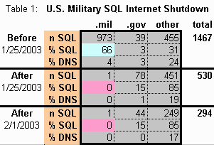 A second smoking gun. Now there is a gun for each hand of the U.S. military computer networks, making "66%" and "0%" smoke rings. It seems that the SQL Slammer has caused a permanent change in the landscape.