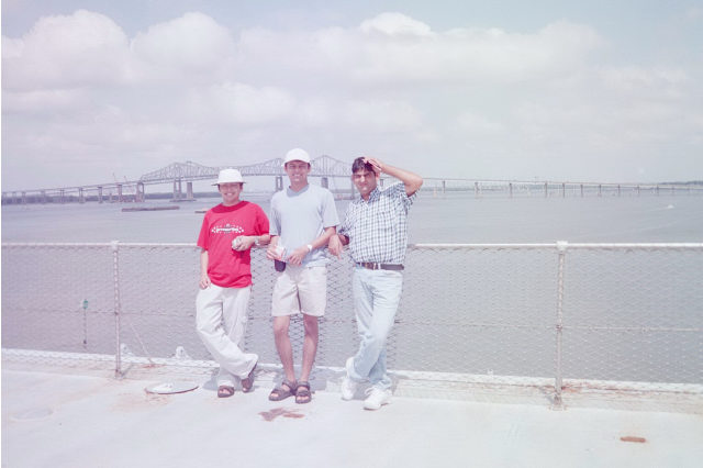 | Deck of the Aircraft carrier. From Left : Abhijit, Nikhil, Sanjay | ||