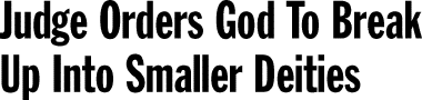 WASHINGTON, DC — Calling the theological giant's stranglehold on the religion industry "blatantly anti-competitive," a U.S. district judge ruled Monday that God is in violation of anti-monopoly laws and ordered Him to be broken up into several less powerful deities.