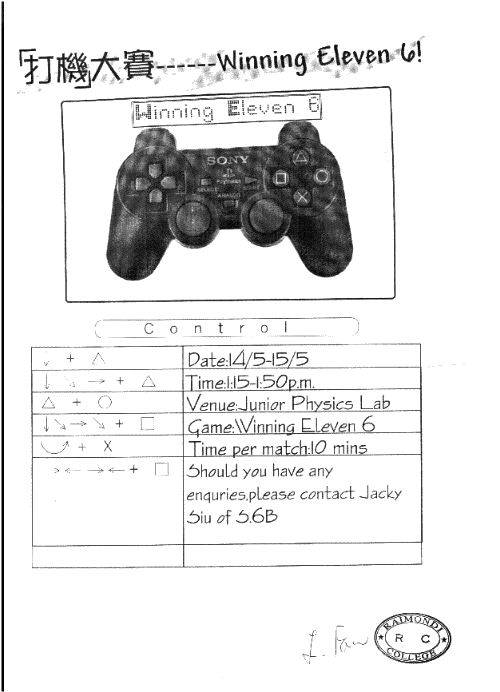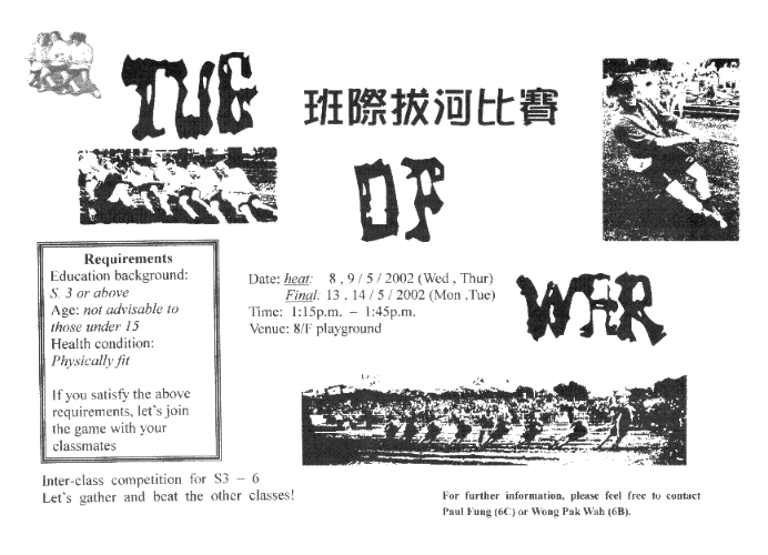 | Remark: | Please Submit your design to Wong Pak Wah or Andrew Yip (S.6B) |