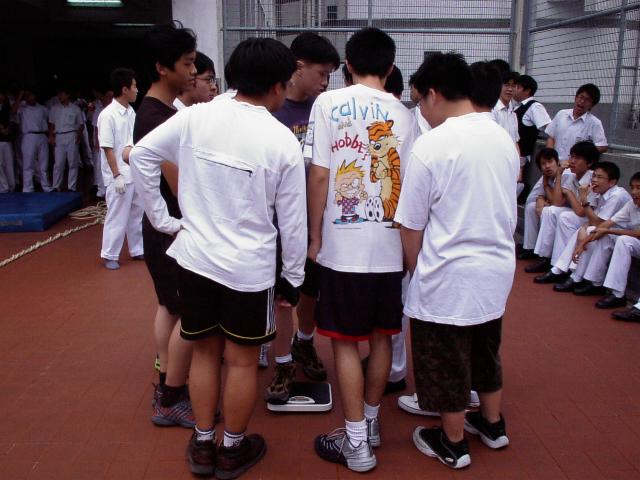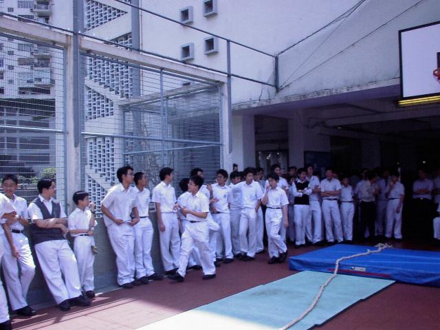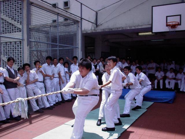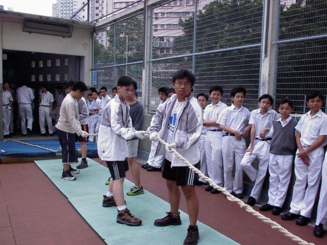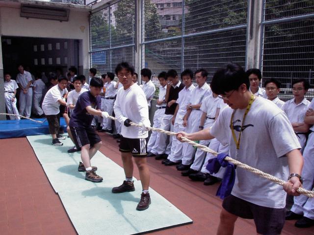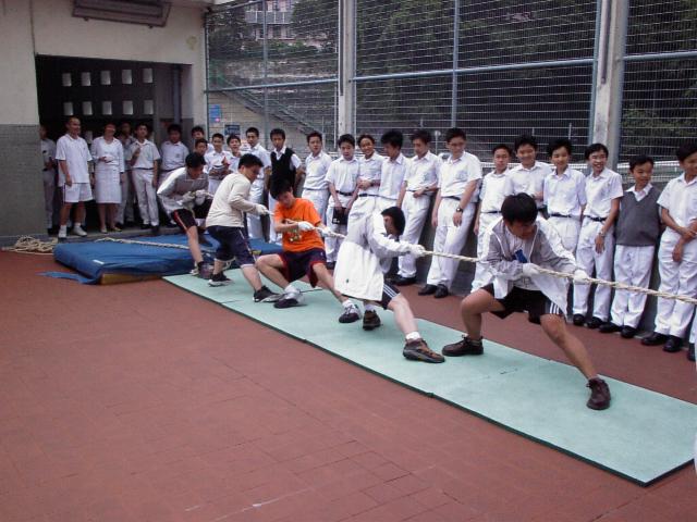 The Tug of War competitions began on the 9th May, with competing teams representing classes from S.3 to S.6. The heat of the event was held before the 13th May as a prelude to the weeklong event, RC Week 2002. The event drew a large crowd to the 8th Playground as spectators cheered and competitors pulled, the event was a great success.