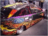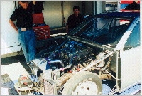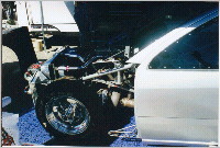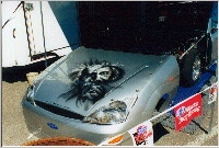Wayne Saunders was at the 1999 SEMA show with his rear wheel drive Focus 3dr. The car has run a best of 7.67 @ 172MPH. It is powered by a Cosworth GTP 2.1L 4-cylinder engine. *click on picture for larger image. Warren (info@kustomz.com) from Kurtz Kustomz Motorsports (http://www.kustomz.com) submitted these pictures of a FWD turbo Focus: *click on picture for larger image. "At the time I stopped by, there was not anyone to give details, but the body is all carbon, and the attention to detail is just plain artwork. If I am not mistaken, the Zetec is coupled to an X-Trac sequential box as used in BTCC and WRC. I know Ford put quite a bit of money behind the vehicle, as they WANT Honda's market." |
