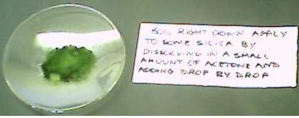 Boil away the acetone. Cool, add a little (half a ml or so of fresh acetone). Add to a little silica,drop by drop, allowing the acetone to evaporate every now and then. Finally dry completely, and scrape off the watchglass.