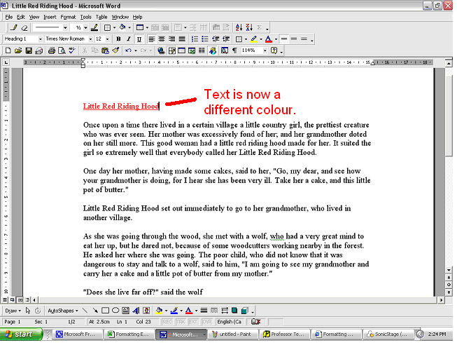formatting features e.g. font, size, bold, italic, underline, colour changes.