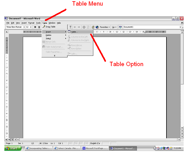 Draw Table. The Table Drawing Toolbar should open and the cursor