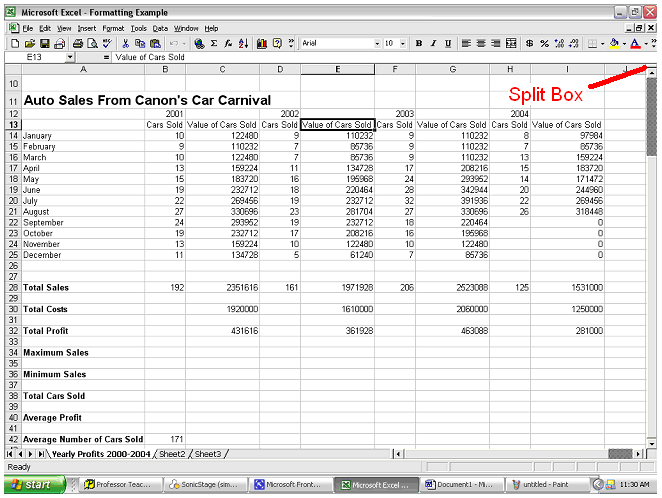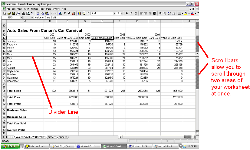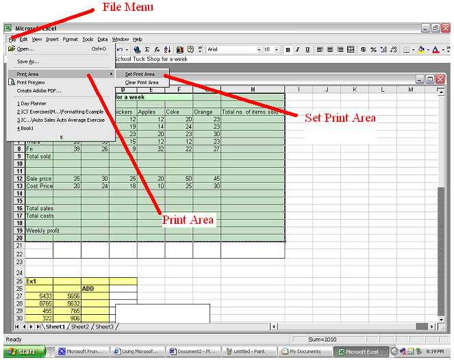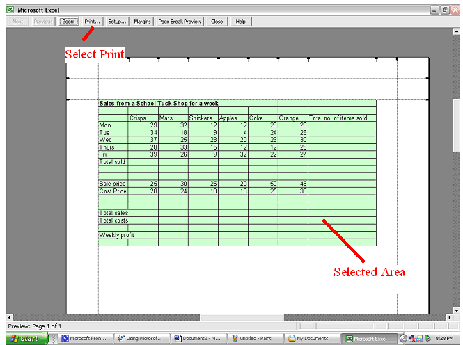 [ Home ] [ Up ] [ Introduction to Excel ] [ Entering a Range of Data ] [ Formatting Cells to Match Data Types ] [ Cut, Copy, Paste and Move Data ] [ Inserting and Deleting Rows and Columns ] [ Entering and Replicating Formulas ] [ Using Simple Functions ] [ Producing Charts with Labels ] [ Printing Selected Areas ]