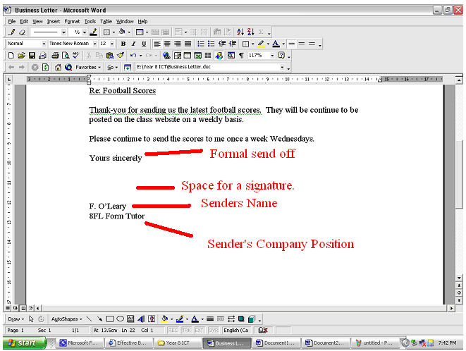 Leave enough space for you to sign the document after it is printed (3 spaces should be good)