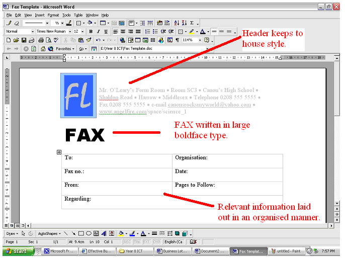 The house style will also exist on all of the companies business documents such as letters, faxes, and invoices. In other words all of the business documents will have the same basic format and carry the company logo as well.