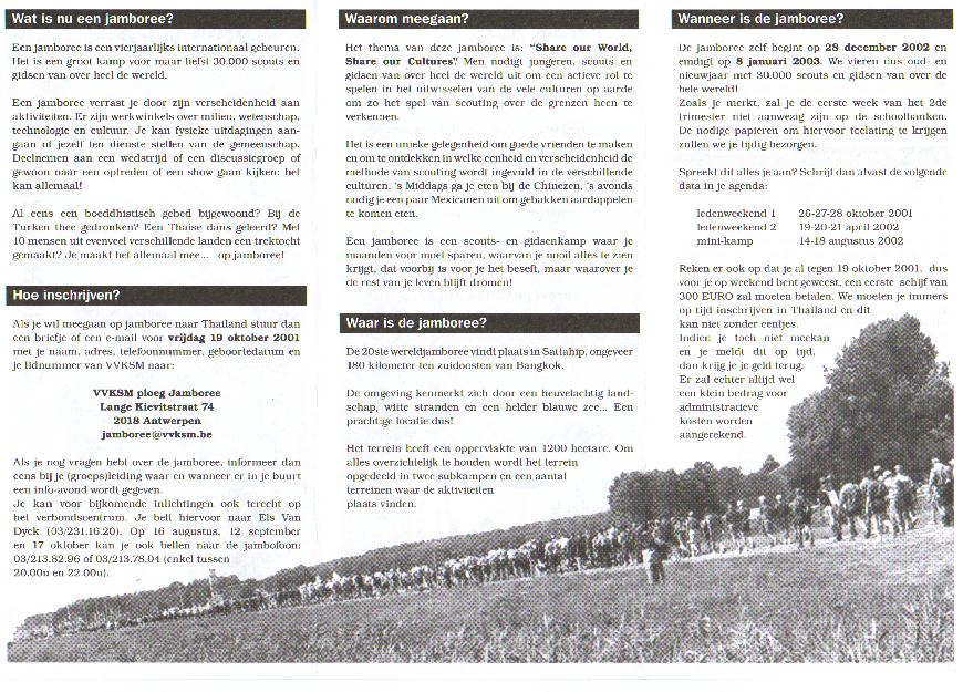 Op de World Scout Jamboree komen scouts en gidsen van over heel de wereld te samen. De afgelopen Word Scout Jamboree werd georganiseerd in Thailand van 28 december 2002 tot 8 januari 2003. Wij hebben alvast