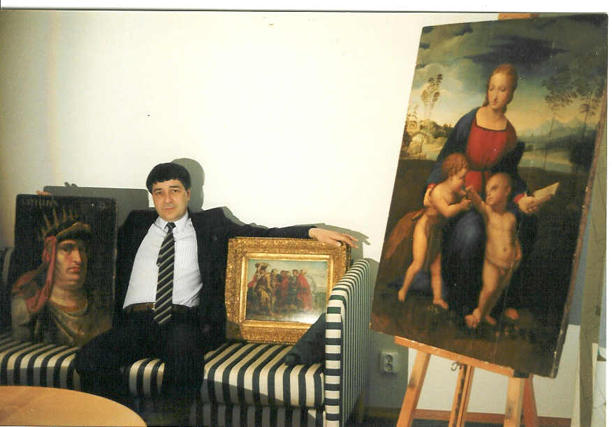 Since his school years, Pierre André THIBAULT (PAT) has always been interested in art and design history as a HOBBY. He is pictured here in 1993 on a private art collection research photo, between the "Emperor Vitellius" by a yet unknown arstist from perhaps as early as A.D. 1470, "Fishermen" by Rubens himself or Rubens' School from maybe 1620, and a "Madonna del Cardellino" or a "Vallombrosa Madonna", possibly by RAPHAEL himself, from about 1505. For more about Pierre A. Thibault's comparative studies between these Madonnas and another of Raphael' s originals or replicas of a same masterpiece, namely a possible original of the "Madonna della Sedia", about 1515, also in another private collection, click below on ART. Studies by PAT as "Prehistoric References", and "Prehistoric Venuses", can be seen and read by clicking below on these headlines. For more about Pierre A. THIBAULT's personal record and Curriculum Vitae, click on CV. Copyright © PAT 2004. For more references, send an email to: pierretours@yahoo.com