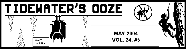 TIDEWATER’S OOZE is the regular monthly publication of the TIDEWATER GROTTO of the NATIONAL SPELEOLOGICAL SOCIETY. If you have any words of wit, trip reports or any insignificant drool, e-mail it to the Editor or mail it all to the TIDEWATER GROTTO, P.O. Box 62642, Virginia Beach, Virginia 23466, and perpetuate your illiteracy!