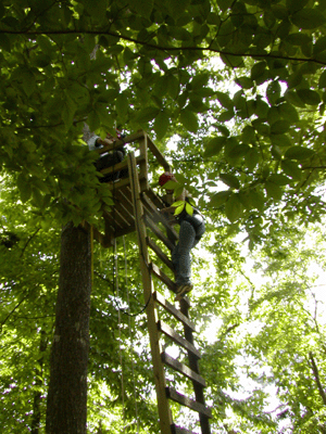 The Grotto Picnic at Joedy and Rita's house on Saturday, 15 May 2004 was a lot of fun. It was the typical hamburgers, hot dogs and drinks. The rappel tower in Joedy's front yard got to see some use and provided amusement for both spectators and rappelers.