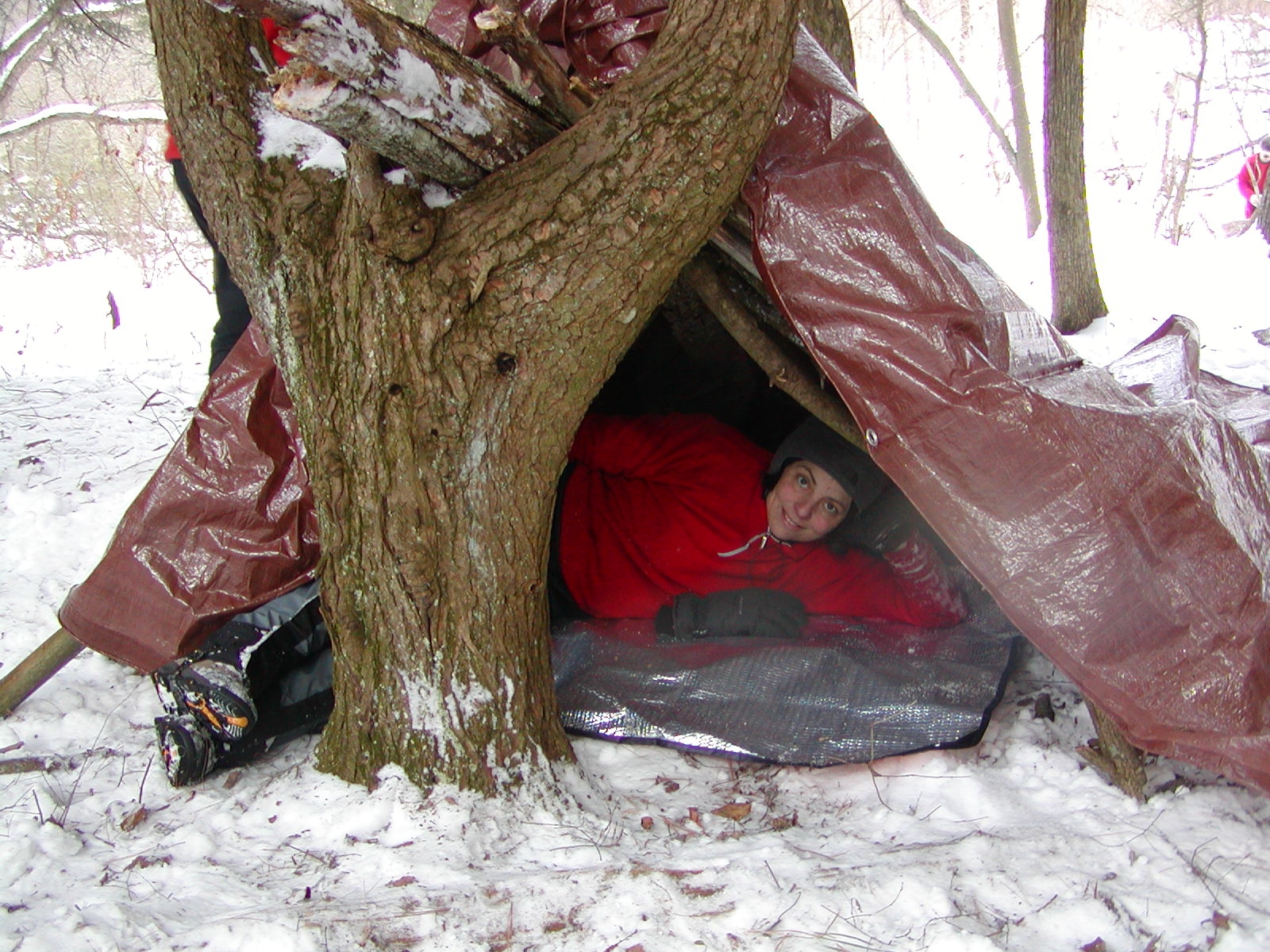 Some cavers just can't get enough of the outdoors! (Rita Klimas taking a survival training course with the Western Pennsylvania Field Institute.)
