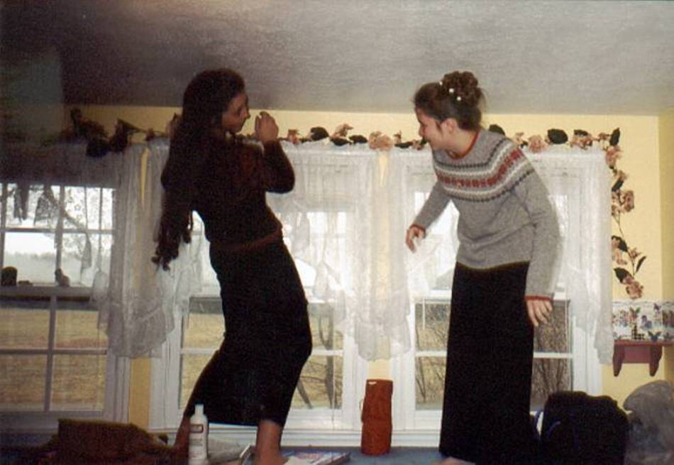 • No... we weren't dancing on my window seat... *haha* See those flowers? Katie bought them for me and we were seeing what they looked like over my windows.
