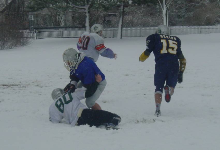 Ein Beispiel nehmen sollten sich die Weggebliebenen etwa an Tim, der sich mit letzter Kraft vom väterlichen Auto zum Platz schleifte, und vom heiligen verschneiten Rasen´ die himmlische Belohnung erfuhr, daß er von seiner schweren Knieverletzung wundersam geheilt wurde und seine Krücken von sich werfen konnte: