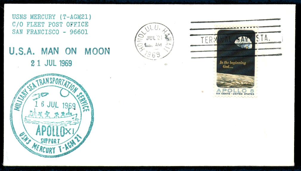 | USS Hornet1 | General Apollo 11 Astronaut on the Moon cachet | Aqua | Printed? |