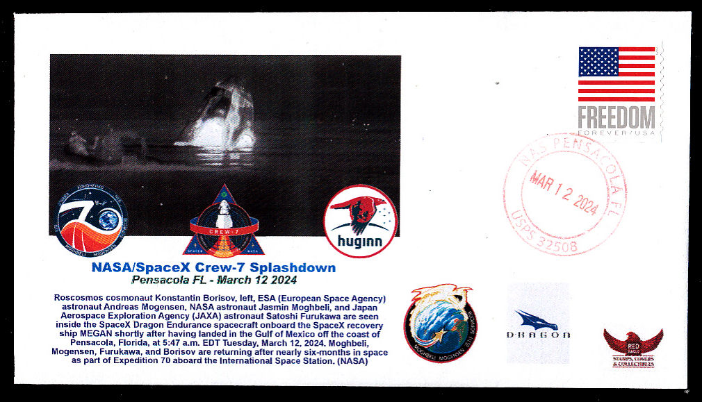 | Pensacola NAS | Closest City to Splashdown - NASA Mission Emblem cover - Red Pmk | Y |