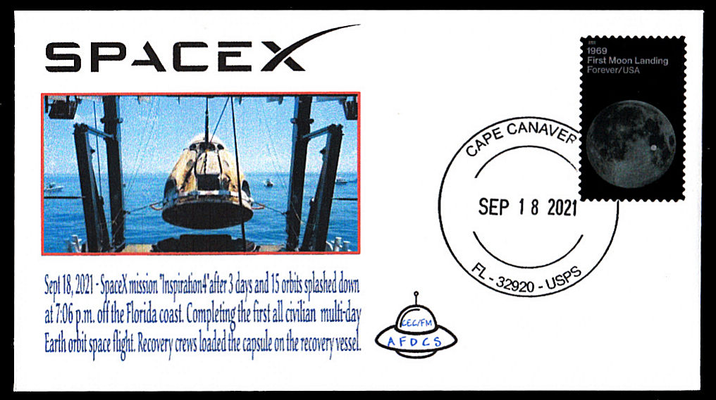 | Cape Canaveral | Closest City to Splashdown - Mission Emblem Cover - Postmark 1 | Y |