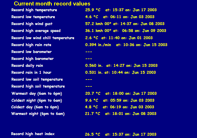 | LAST READING AT TIME: 17:00 DATE: June 19 2003 ,Time of next update: 17:30 | |||