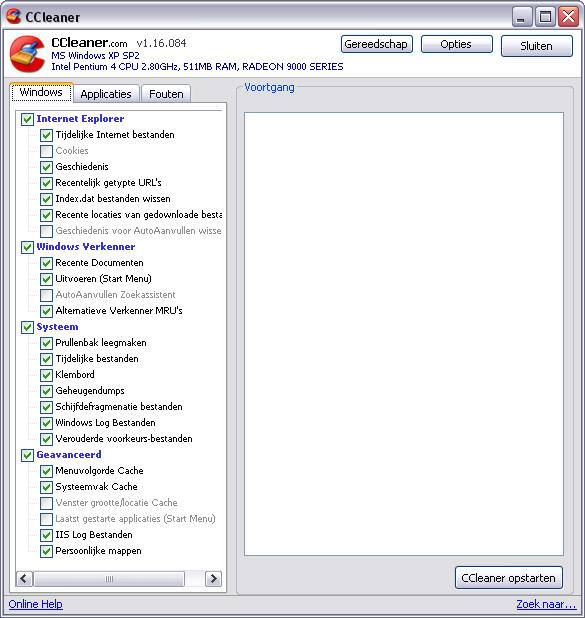 Bij het starten van Regcleaner kom je in volgend