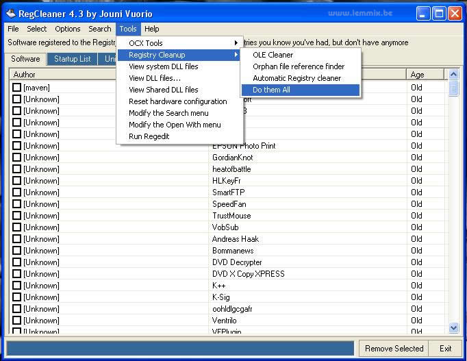 "All" (check even of al de selectievakjes vóór de nutteloze registry