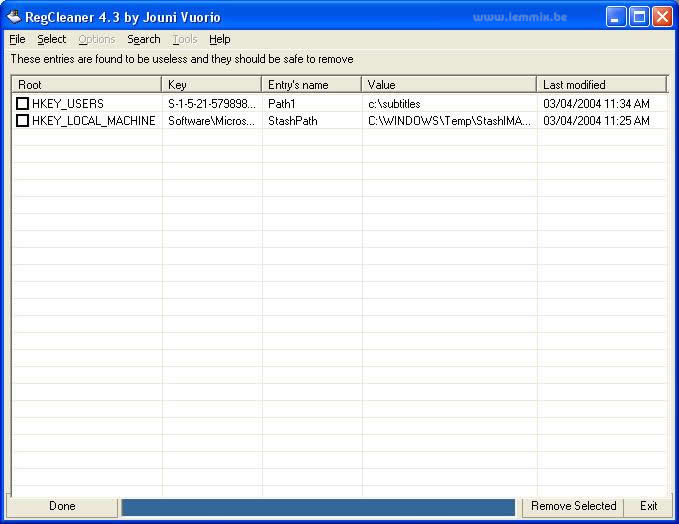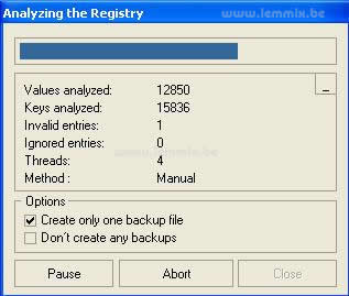 Nu begint Regcleaner te zoeken naar registry keys