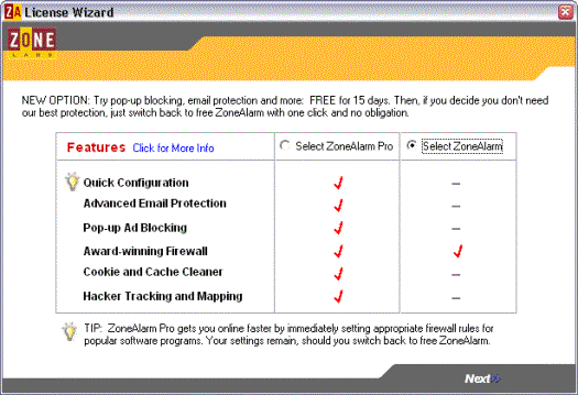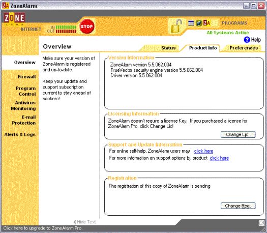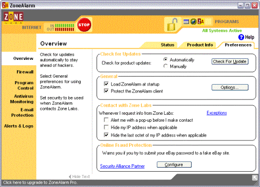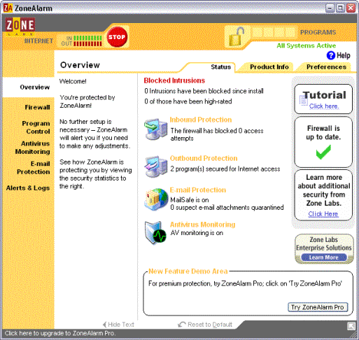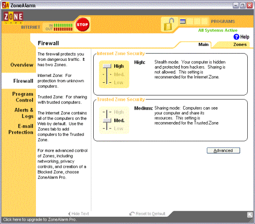 De betalende versie (ZoneAlarm