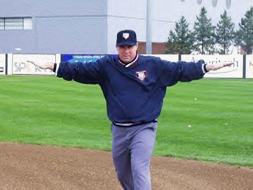One Instructional Technique : A quick word on a method for starting of the "safe" and "out" call by initially raising or going into motion with both arms. It is handy particularly when teaching novice umpires. The sequence becomes: "hands-on-knees-set, pause, read, raise both arms to chest/shoulder height close to the body, now react, CALL, return to set" or "standing set, pause, read, move both arms, now react, CALL, return to set." This forces that extra second so quickly glossed over by the new umpire. I like to think of it putting both arms into motion at the same time, a ready-to-call or relaxed prep position. As an umpire progresses slow and proper timing is ingrained into the call and so this technique becomes molded in your personal style. Personally, whenever I find myself rushing a call I resort back to this basic series of motions.