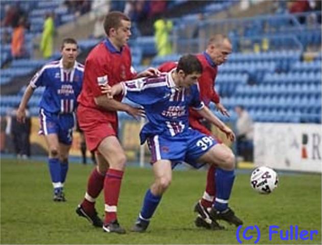Stuart is another local lad who has made the jump into the first team. Born in Carlisle on the 15th of March 1984, he has come through YTS to be offered a 6 month contract from the12th of March 2002. Less than a month later he found himself making his debut for the first team against Macclesfield at home on the 1st of April, playing for 75 mins to be replaced by Slaven in the 3-2 home win. Away at York on the 9th of April Stuart came on for Murphy 15 minutes into the game and settled to his task well helping the blues to a 0-0 draw. Against Plymouth on the 13th of April at home he came on for Allan in the 66th minute, a game lost 0-2 to a high flying Argyle side. He started the last two games of the season Cheltenham at home and Mansfield away and with each appearance Stuart has looked more composed. He has shown his ability to take good corners and certainly won't go missing in any game, another good young prospect.