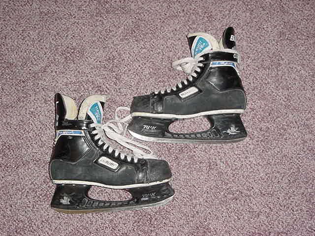 This is a pair of Jim Campbell game worn Bauer Supreme 5000 skates size 9. The skates show light wear, and are in very good shape. These skates were worn in the 1999-2000 season with the IceCats.