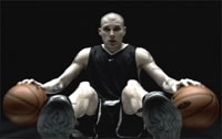 As he talks, JWill sits in front of his locker, furiously dribbling a basketball with his left hand -- the ball so low to the lockerroom carpet it could be simply vibrating. JWill shifts the topic to the Europeans in the room, Peja and Vlade. "You've been getting paid since you were 12," says Darrick Martin to Peja, who simply grins as he stretches on the floor. Divac boasts that three years of European education is worth 10 in the U.S. system. "Oh, I'm sure of that," JWill says. "I know any of yours has to be better than mine." Hedo Turkoglu walks in from warming up and sits down next to JWill. Someone asks him if he has his degree. JWill answers for him. "Sure he does," he says, pretending to palm Turkoglu's dome. "Look at the knowledge up here."