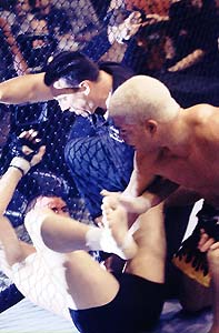 Japanese sensation Yuki Kondo at UFC XXIX. Kondo came out strong and hit Tito with a flying knee to the face, but Ortiz went into a rage and anhilated Kondo with a flurry of punches and elbows, causing him to tapout @ 1:52.